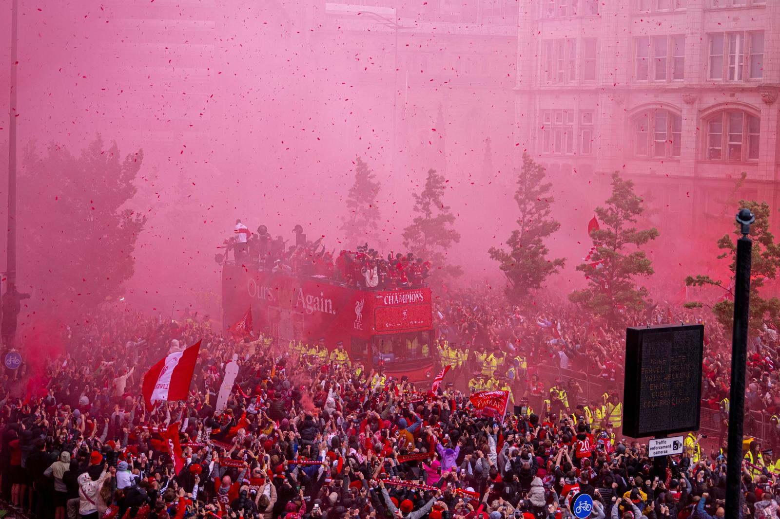 Custom open-top parade buses supplied to support Liverpool FC’s 2025 championship celebrations, transporting players and officials through the city as part of the official victory parade.